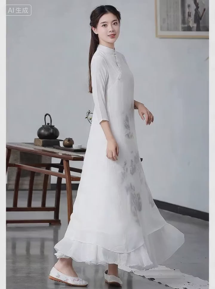 Chinese-Inspired Hanfu,Zen-Inspired Vintage Ink Wash Painting Hanfu