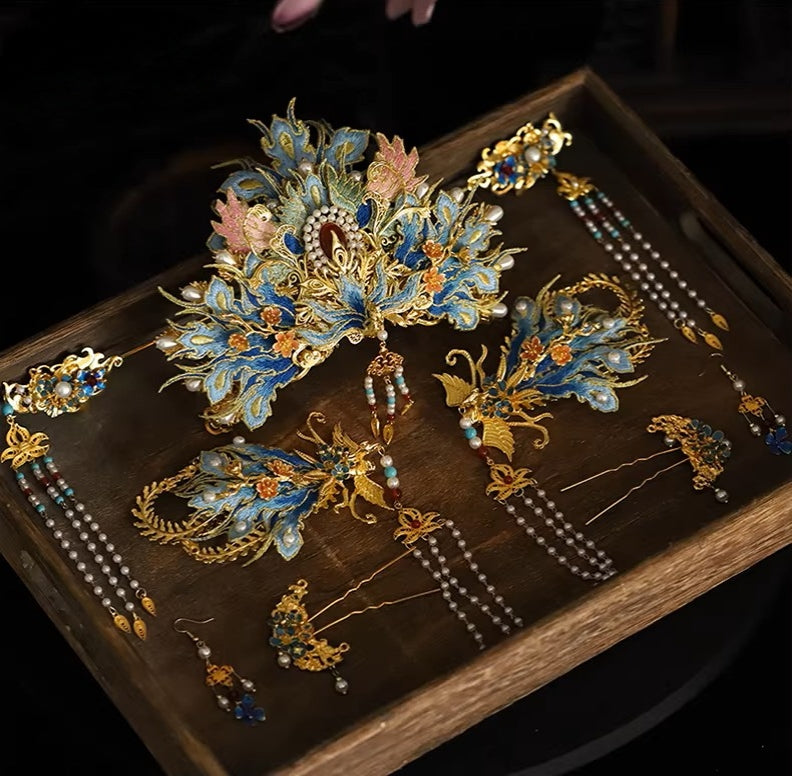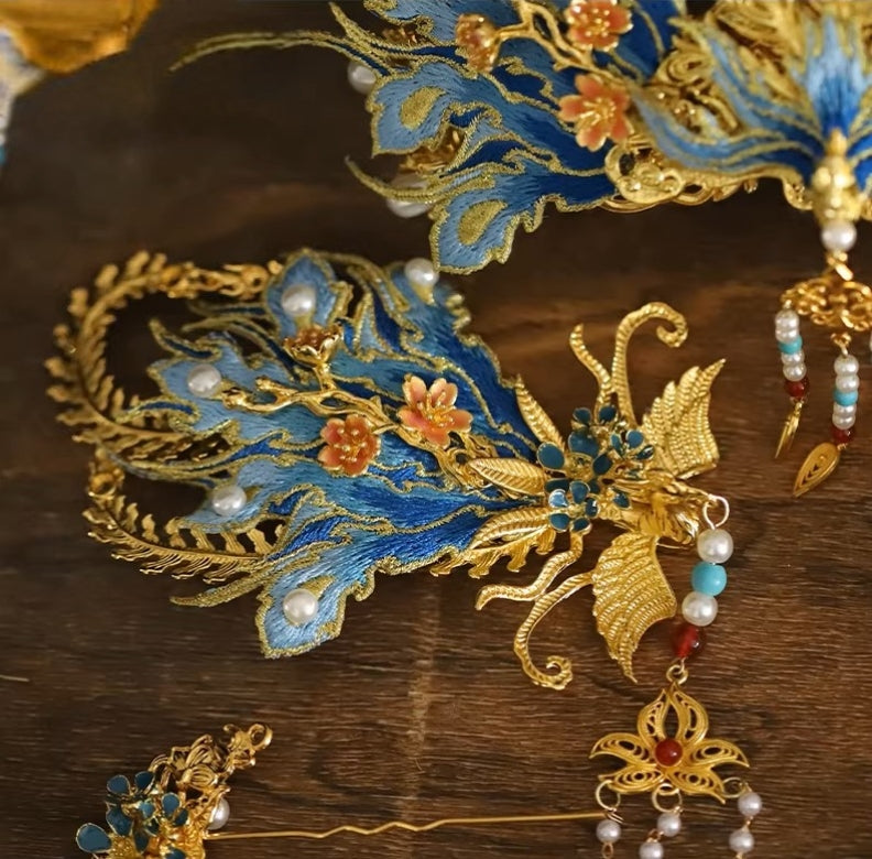 Handcrafted Phoenix Coronet Headpiece Set for Ming-style Hanfu