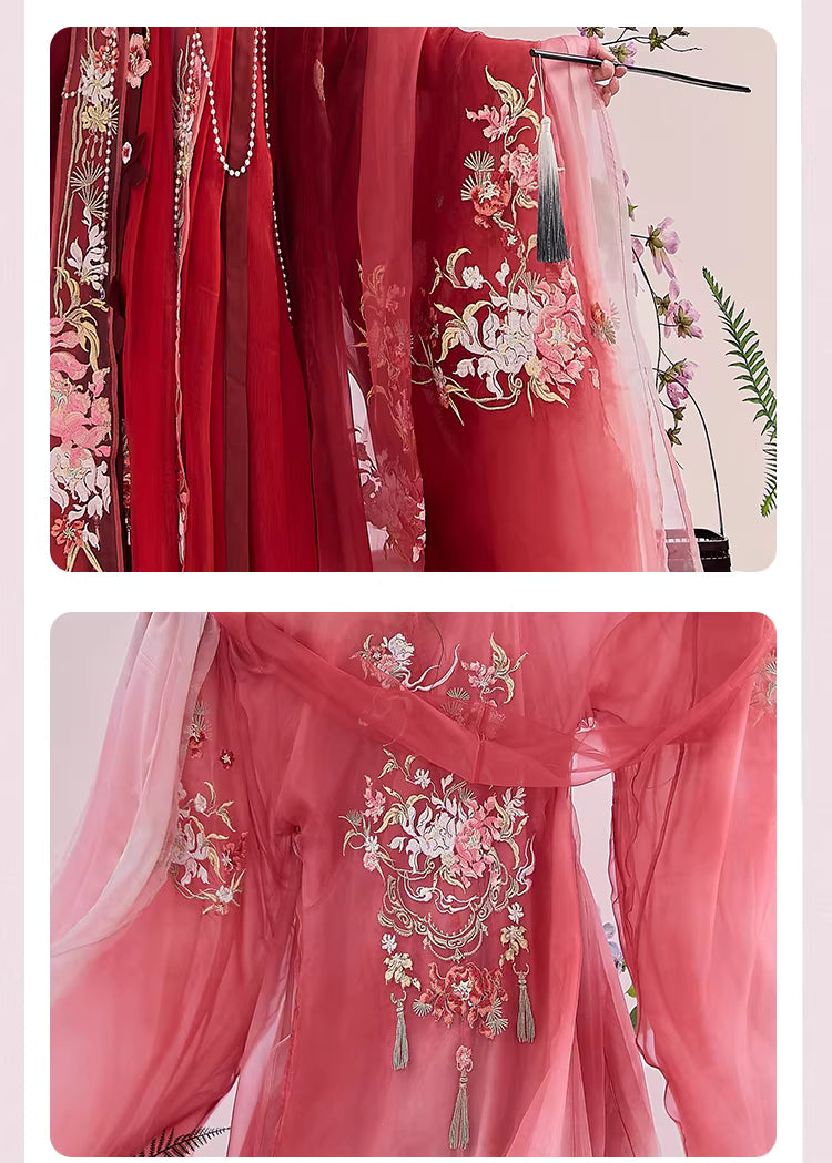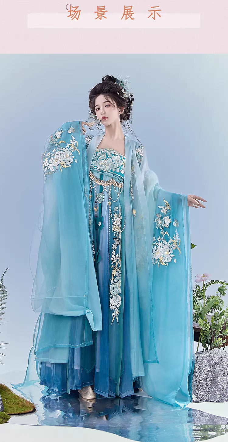 Tang Dynasty Hanfu-Exquisite Heavy Embroidery Wide-Sleeve Shirt + High-Chest Heziqun